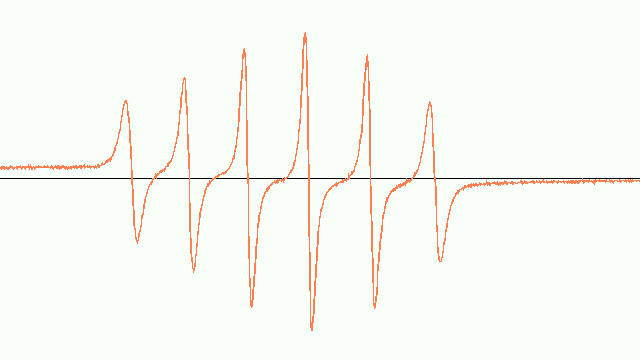 ( 1)  硫酸マンガン(Ⅱ)五水和物,  試料. ( 2)  電子スピン共鳴装置,  測定装置. ( 3)  ν,  共鳴周波数,  Resonant Frequency,  ヘルツ, ( 物理量). ( 4)  ギガヘルツ,  GHz,  周波数, ( 単位). ( 5)  T,  温度,  tempreture,  ケルビン, ( 物理量). ( 6)  セルシウス度,  ℃,  温度, ( 単位). ( 7)  P,  照射電力,  Power,  ワット, ( 物理量). ( 8)  ミリワット,  mW,  電力, ( 単位). ( 9)  Ce,  中心磁場,  Center Field,  テスラ, ( 物理量). ( 10)  ミリテスラ,  mT,  磁束密度, ( 単位). ( 11)  ,  磁場掃引幅,  ,  ミリテスラ, ( 物理量). ( 12)  ミリテスラ,  mT,  磁束密度, ( 単位). ( 13)  Fi,  磁場掃引時間,  Field Sweep time,  秒, ( 物理量). ( 14)  秒,  s,  時間, ( 単位). ( 15)  ,  磁場変調強度,  ,  ミリテスラ, ( 物理量). ( 16)  ミリテスラ,  mT,  磁束密度, ( 単位). ( 17)  tc,  時定数,  Time Constant,  秒, ( 物理量). ( 18)  秒,  s,  時間, ( 単位). ( 19)  ,  増幅率,  ,  分率, ( 物理量). ( 20)  マンガンマーカー (Mn2+/MgO),  Mn2+ Marker, ( 材料). ( 21)  Mn マーカー バックグラウンド 2007/05/31調整 ESRスペクトル (2回目),  グラフ. ( 22)  g値, ( 計算). ( 23)  マンガンマーカーからg値を求める計算式, ( 計算). ( 24)  A,  超微細結合定数,  hyperfine coupling constant ,  テスラ, ( 物理量). ( 25)  ミリテスラ,  mT,  磁束密度, ( 単位). |